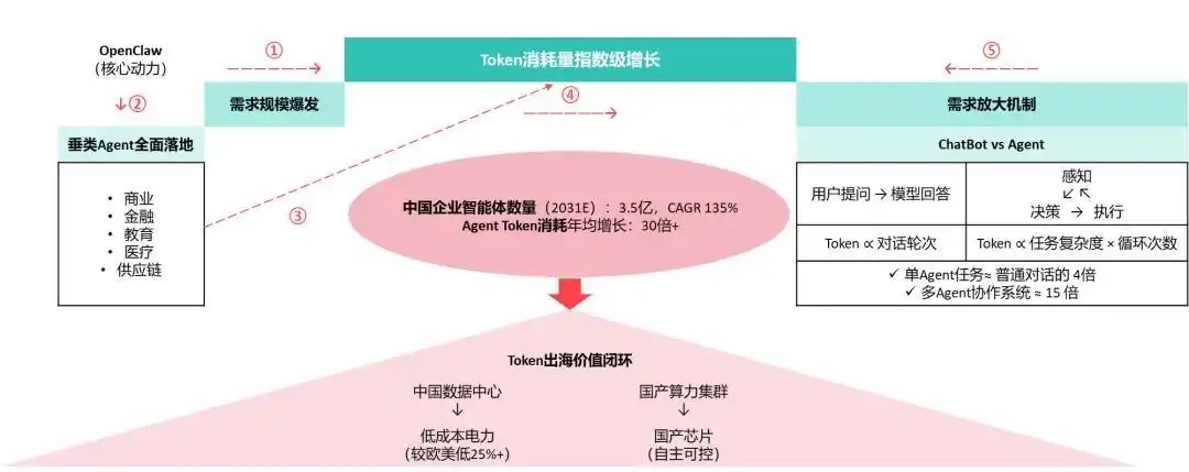 Token需求爆发驱动AI算力从“训练主导”转向“推理主导”,中国凭借能源成本优势通过Token出海构建起以算力为媒介、电价为锚点的数智贸易新范式。